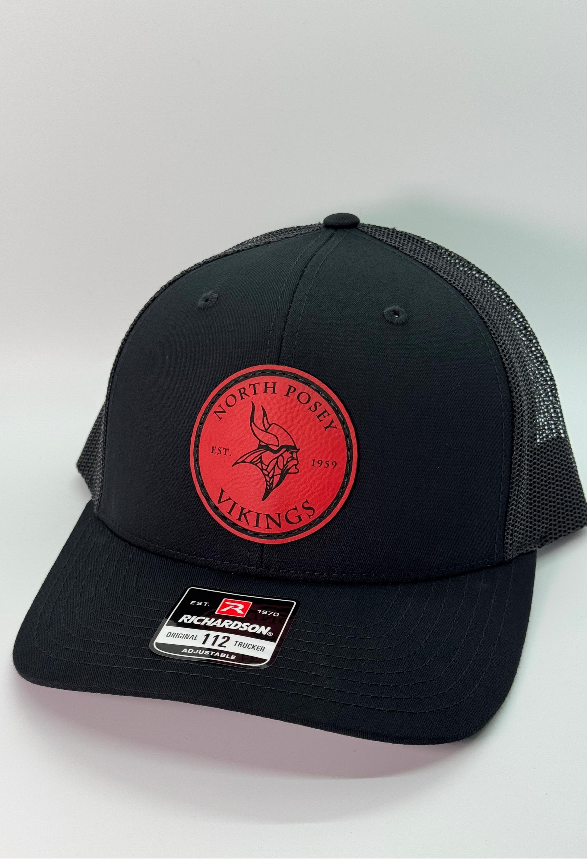 Support your North Posey Vikings! Red Leatherette circle patch pressed AND stitched for a lasting hold!